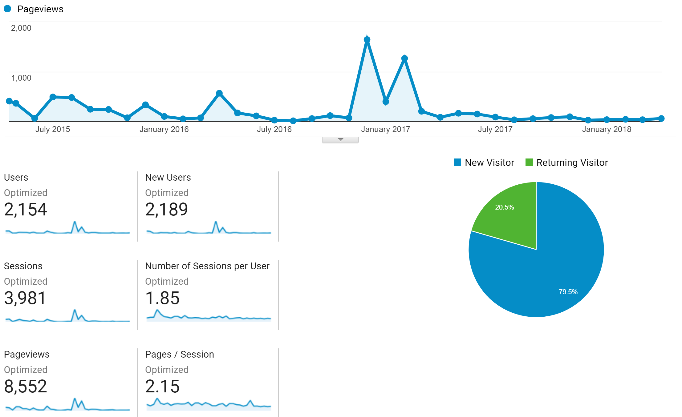 Google Analytics Overview Report for the Duration (24/4/2015 – 24/4/2018)